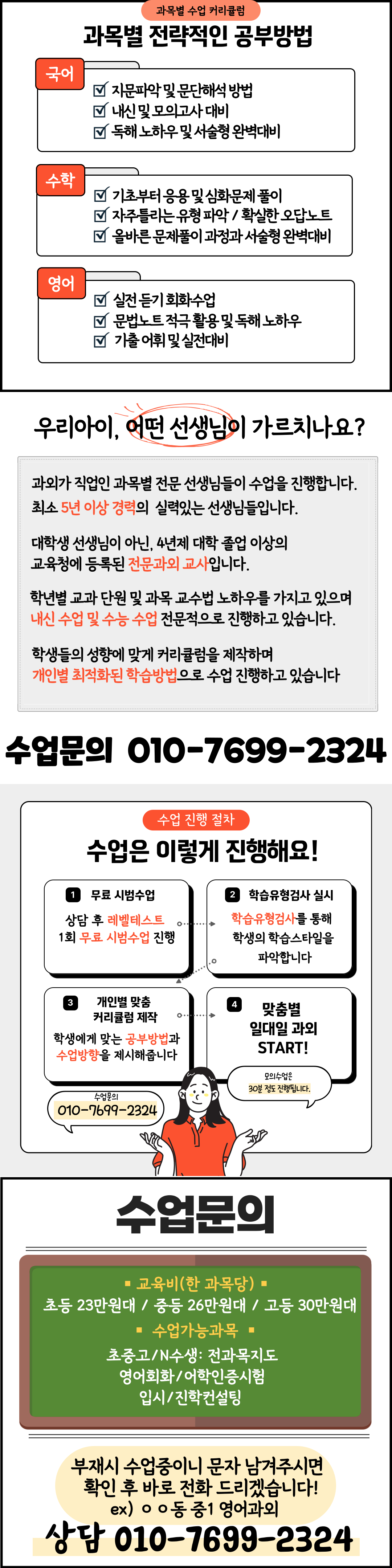 | 영천 중학생 수학과외 고등 국어과외 초등 영어 전과목 한국사 내신대비 예비고통합사회 중등과학 고등과탐 개인 (0) | 2024.01.22 |